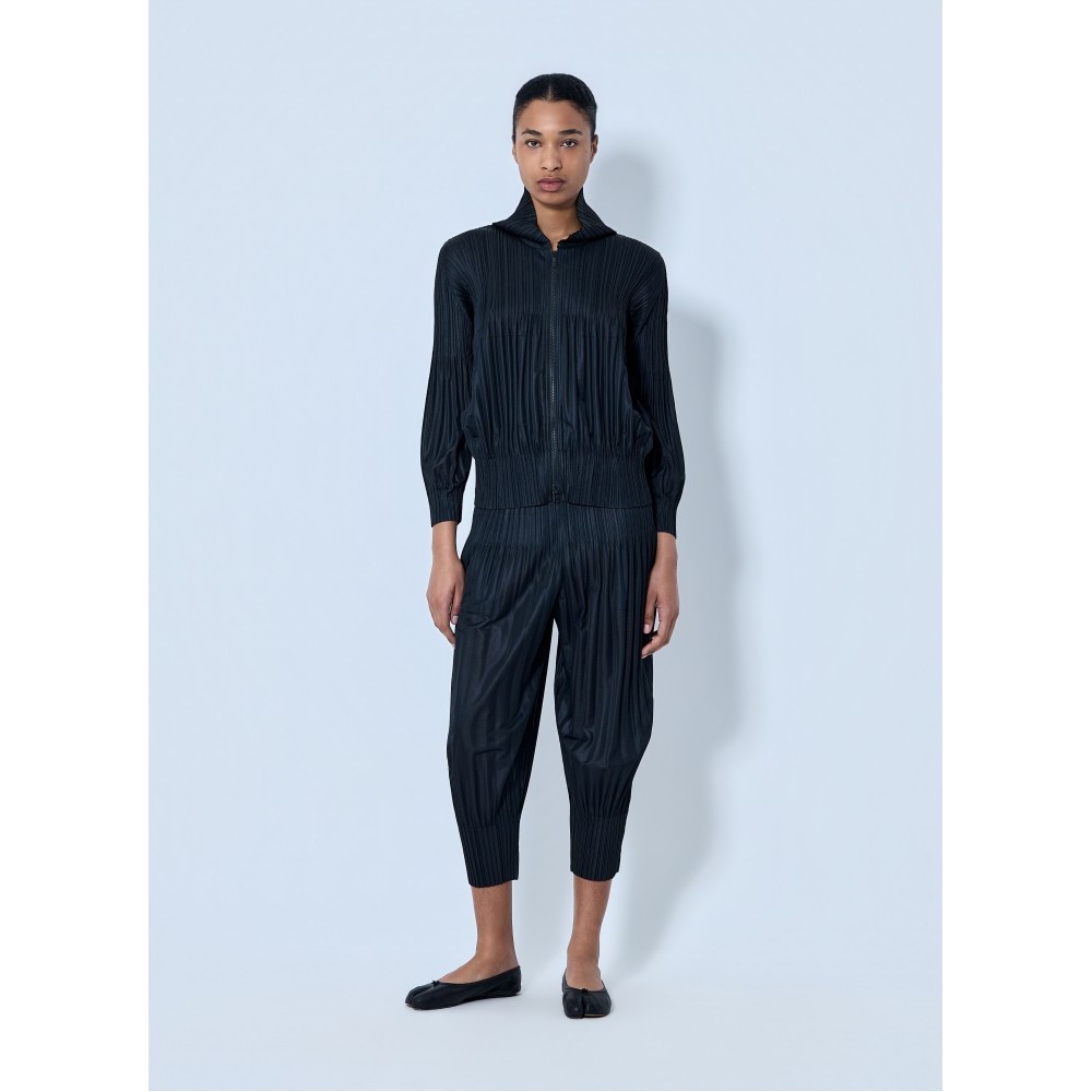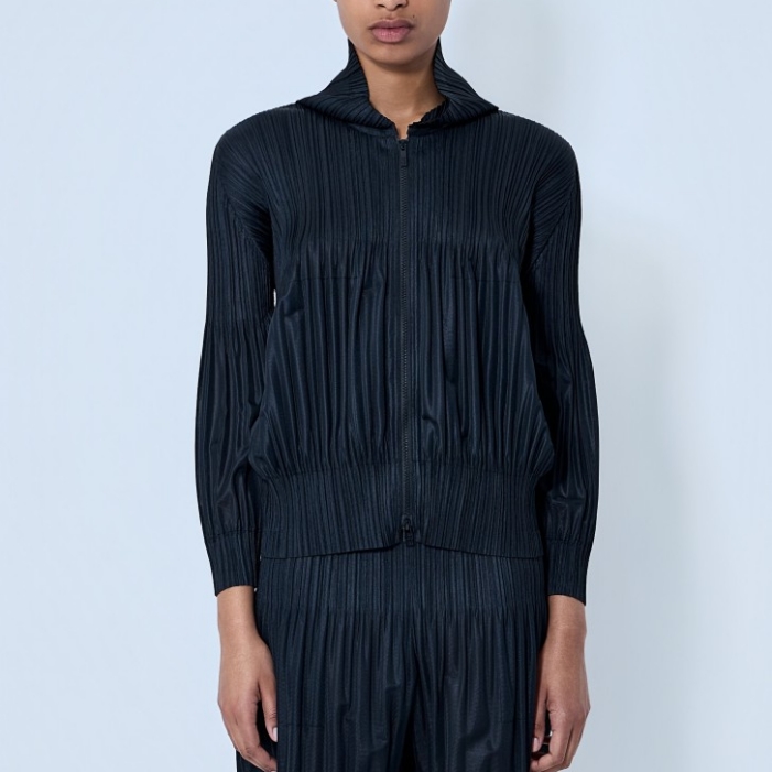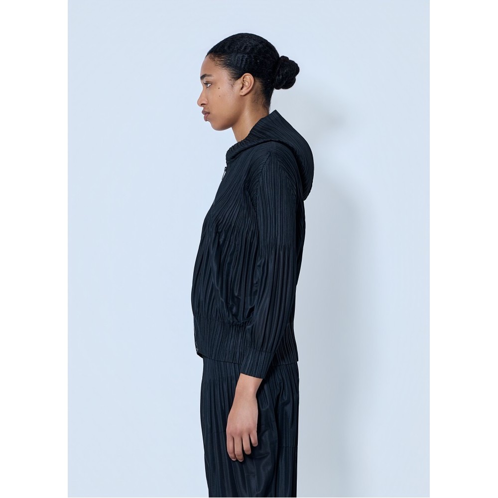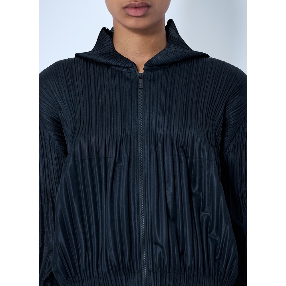 Zip-up jacket in pleated construction with high neckline.