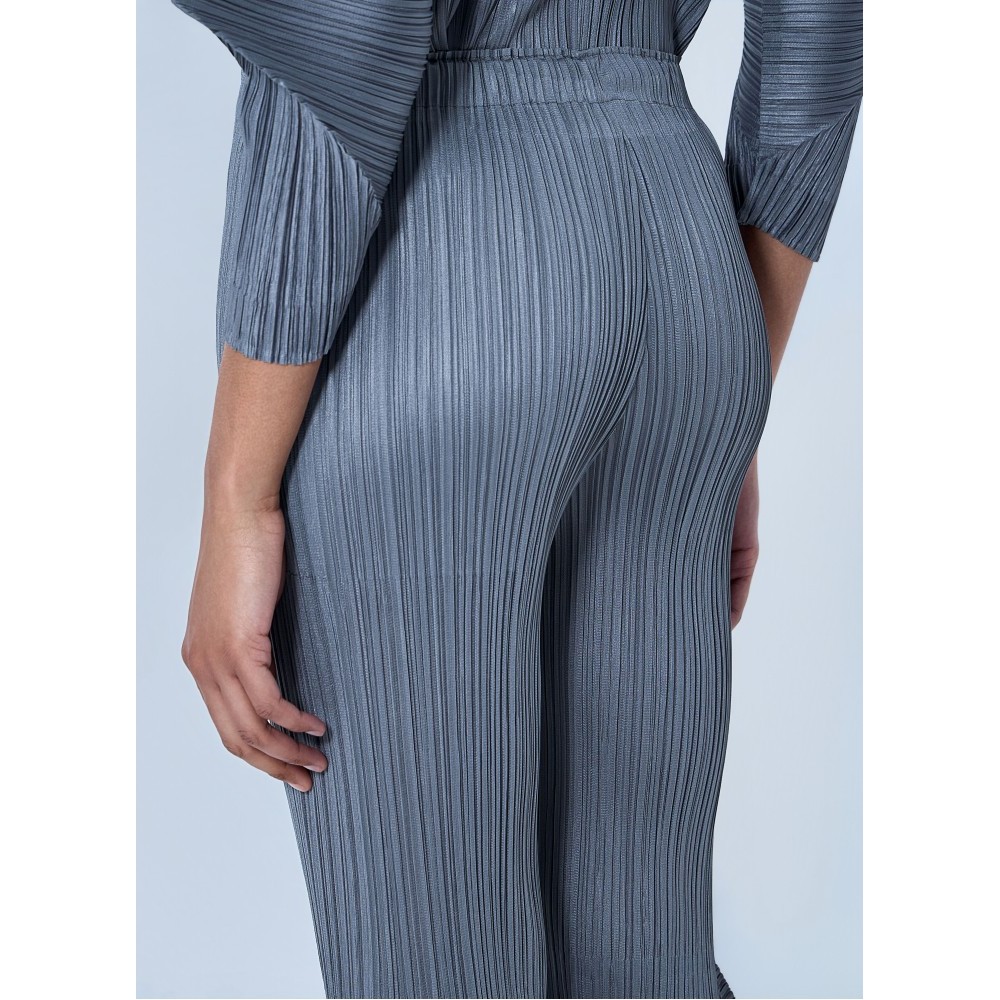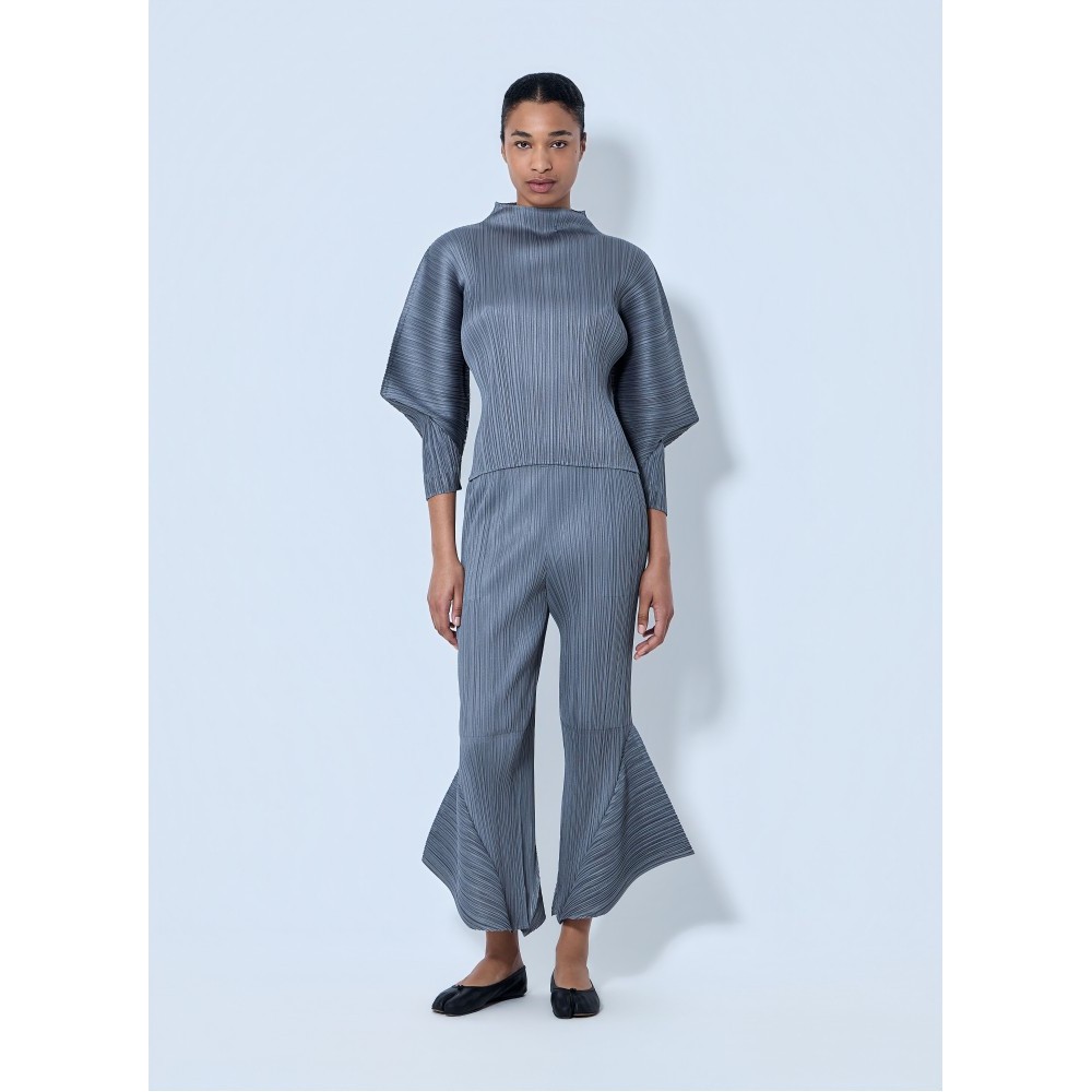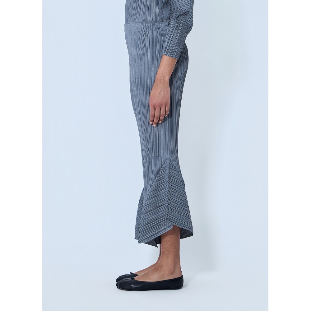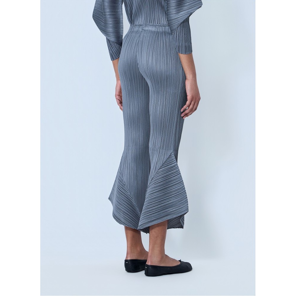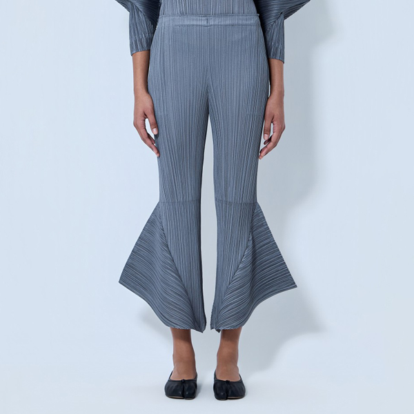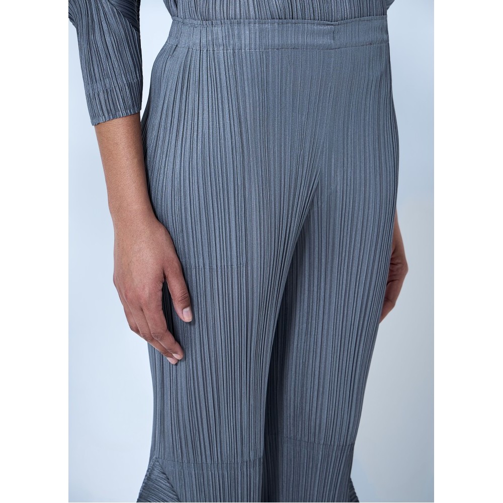 Mid rise pleated trousers with flared hem detailing.