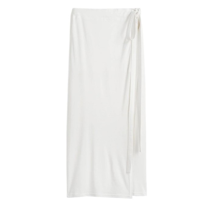 Description : Maxi length, adjustable drawstring waist, bow fastening, wrap skirt.