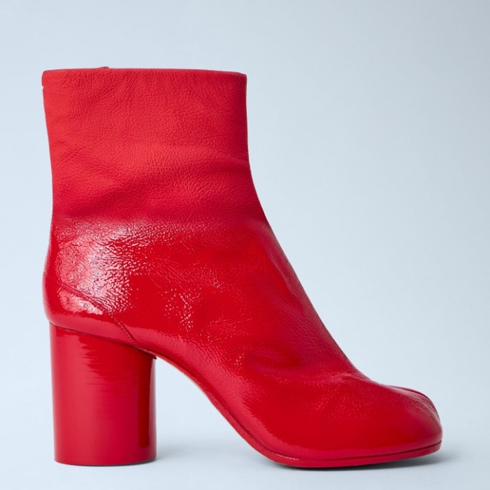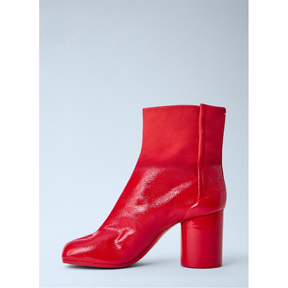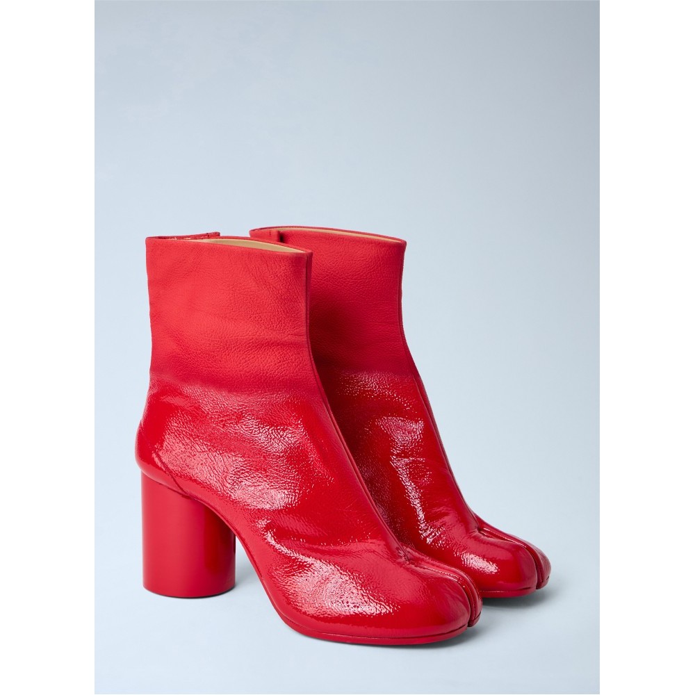Ankle boots in textured leather with cylindrical block heel.