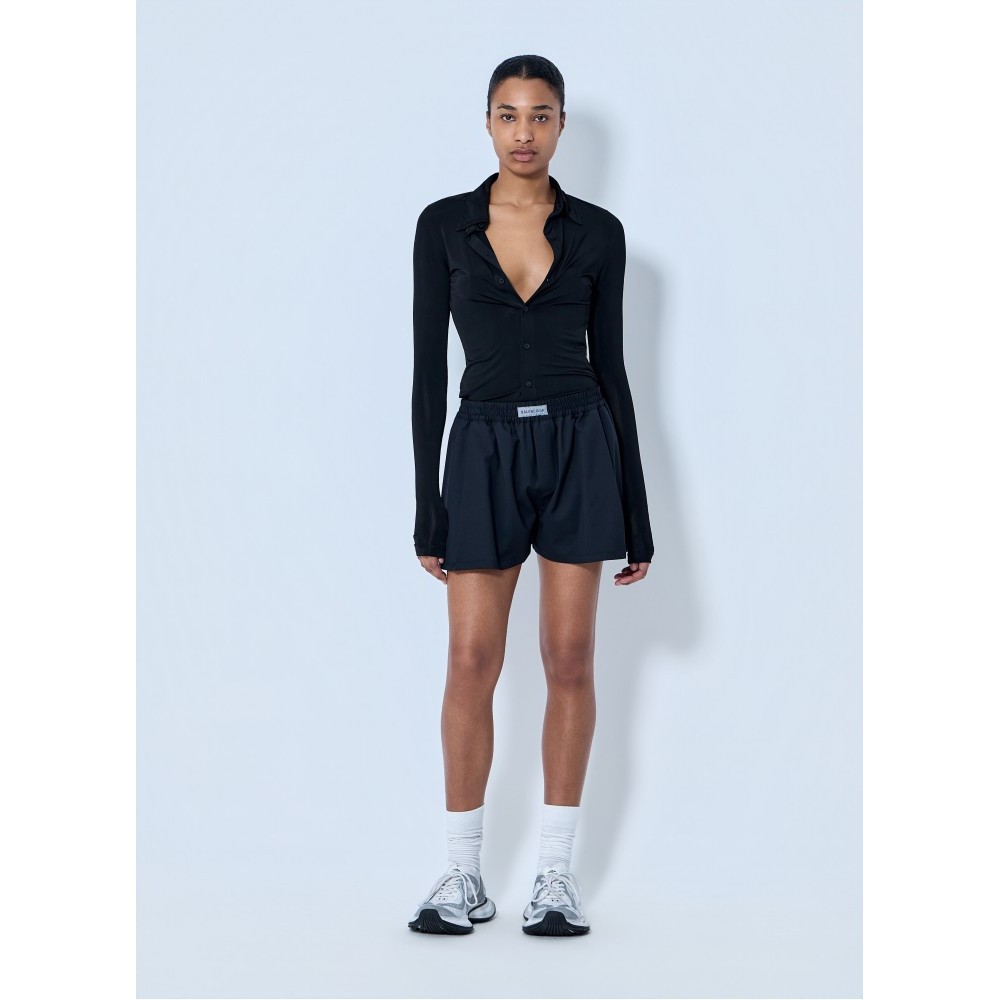Elasticated waistband shorts with pleated front detail.