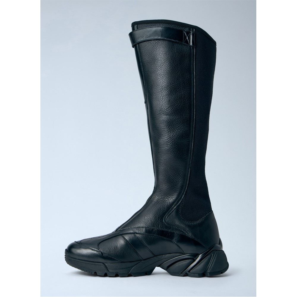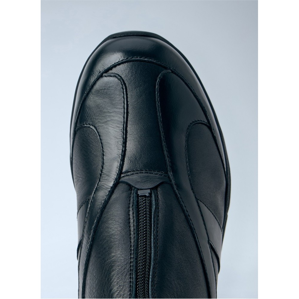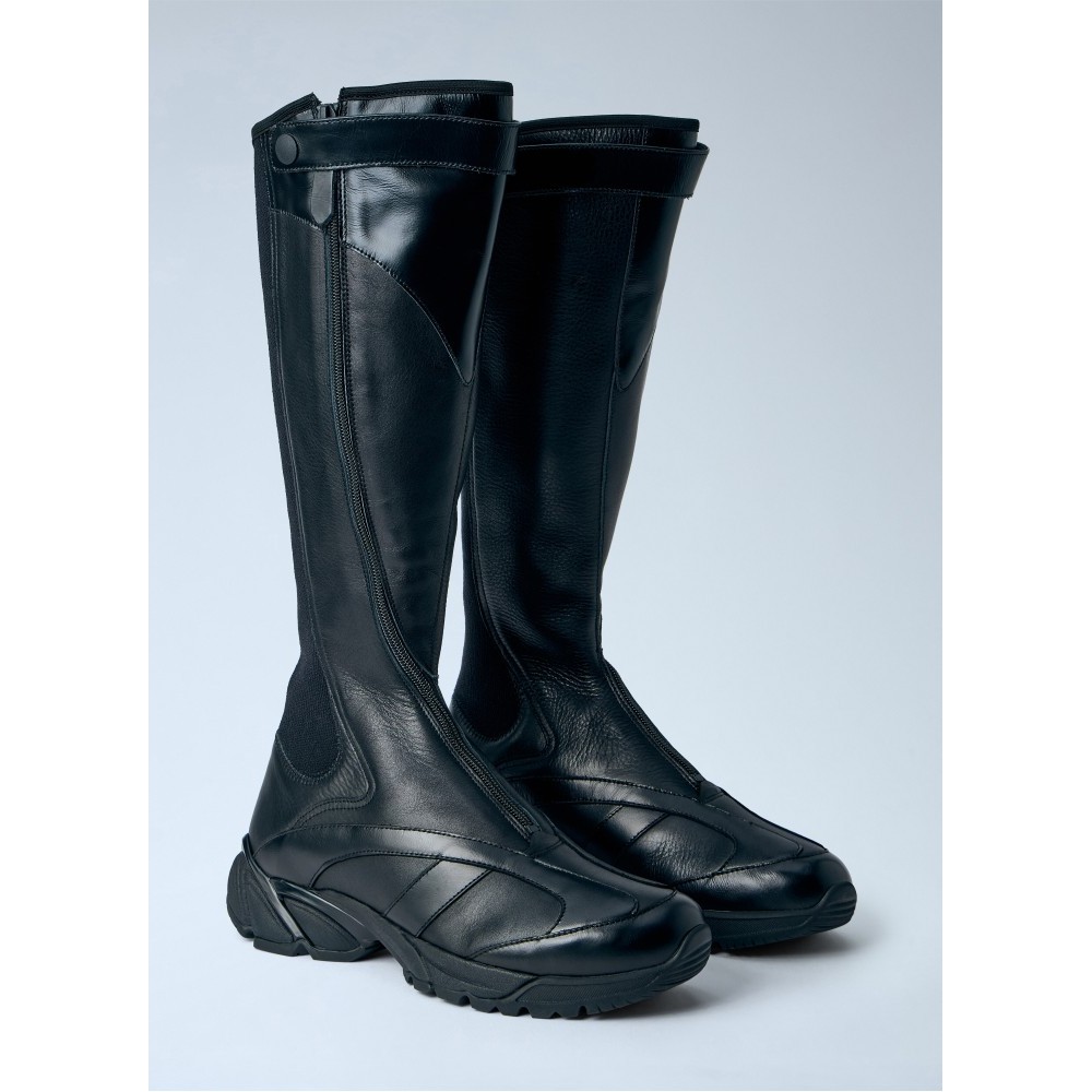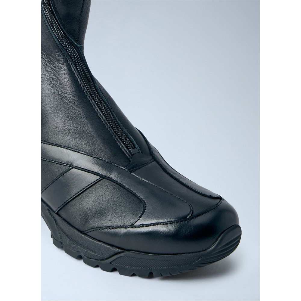 High leather boots with side zip fastening.
