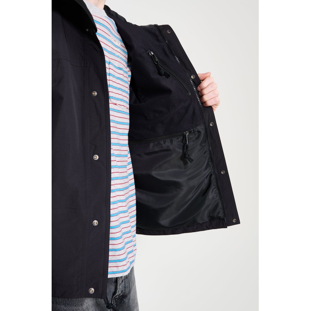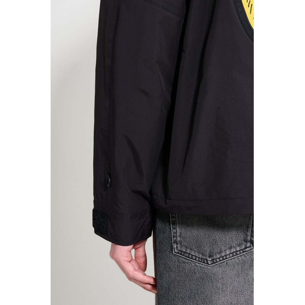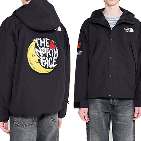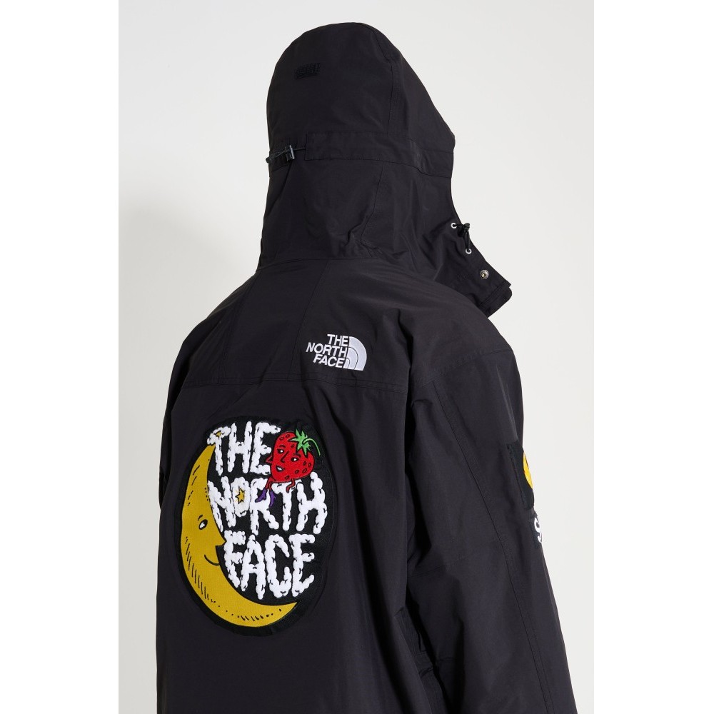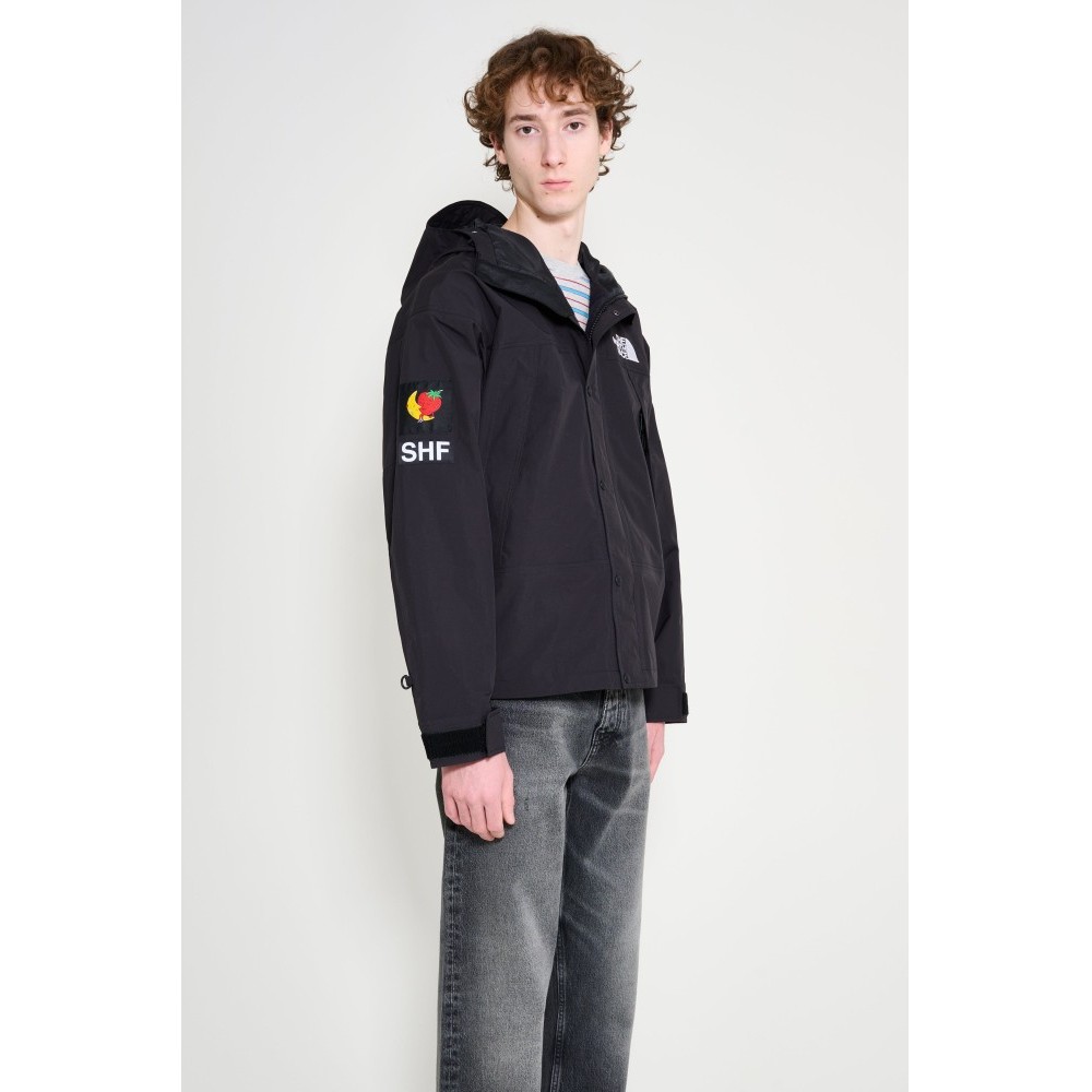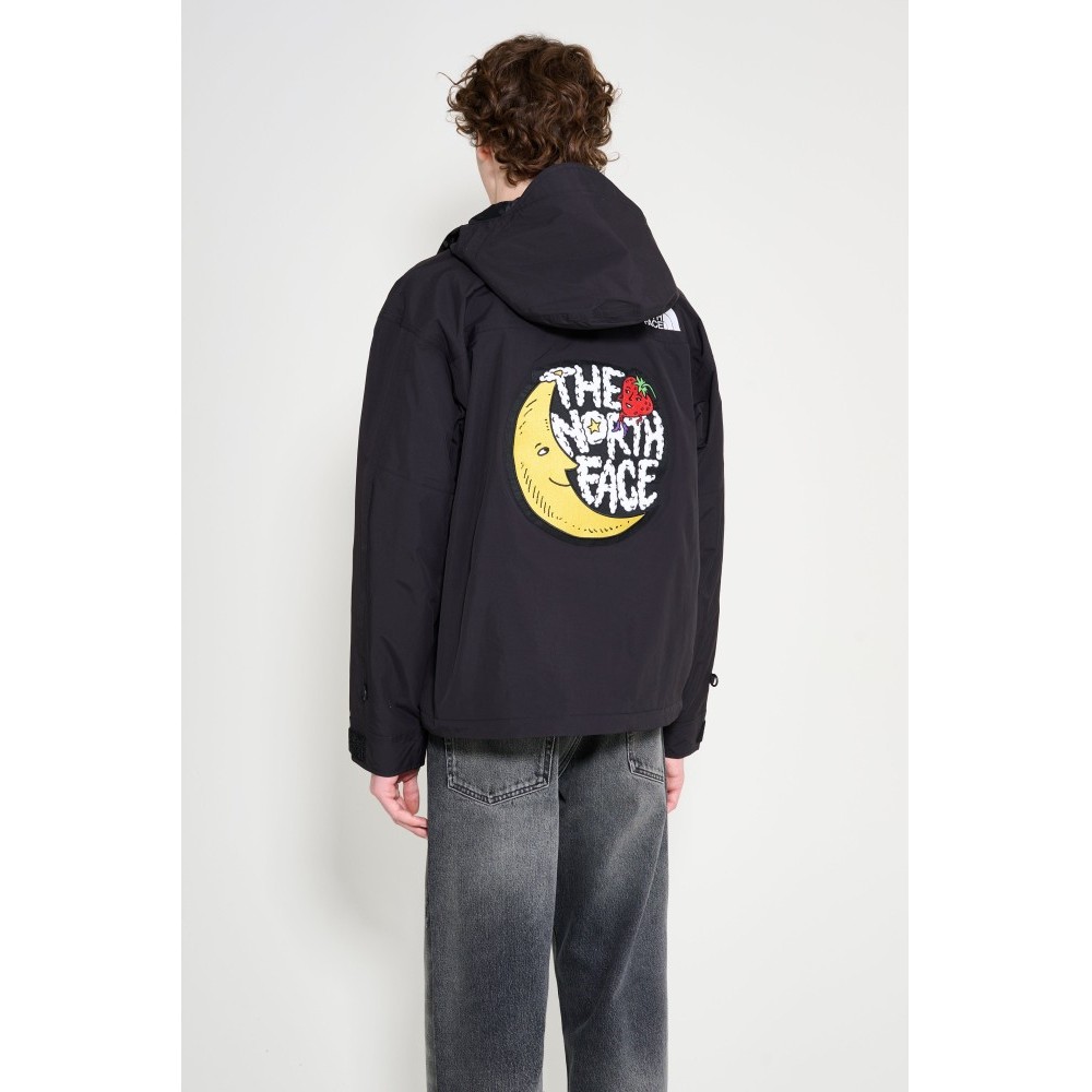 Hooded jacket from The North Face x Sky High Farm. Crafted from black woven shell with a short length and a full lining. The front and arms carries logo branding, while the back shows larger graphic artwork. Designed with a drawstring hood, front zip with press-stud placket, underarm vents, adjustable cuffs, and multiple pockets.