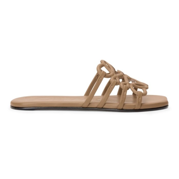 ¼³¸í :Sandals & slides,front logo,smooth leather,flat heel,open,square toe.