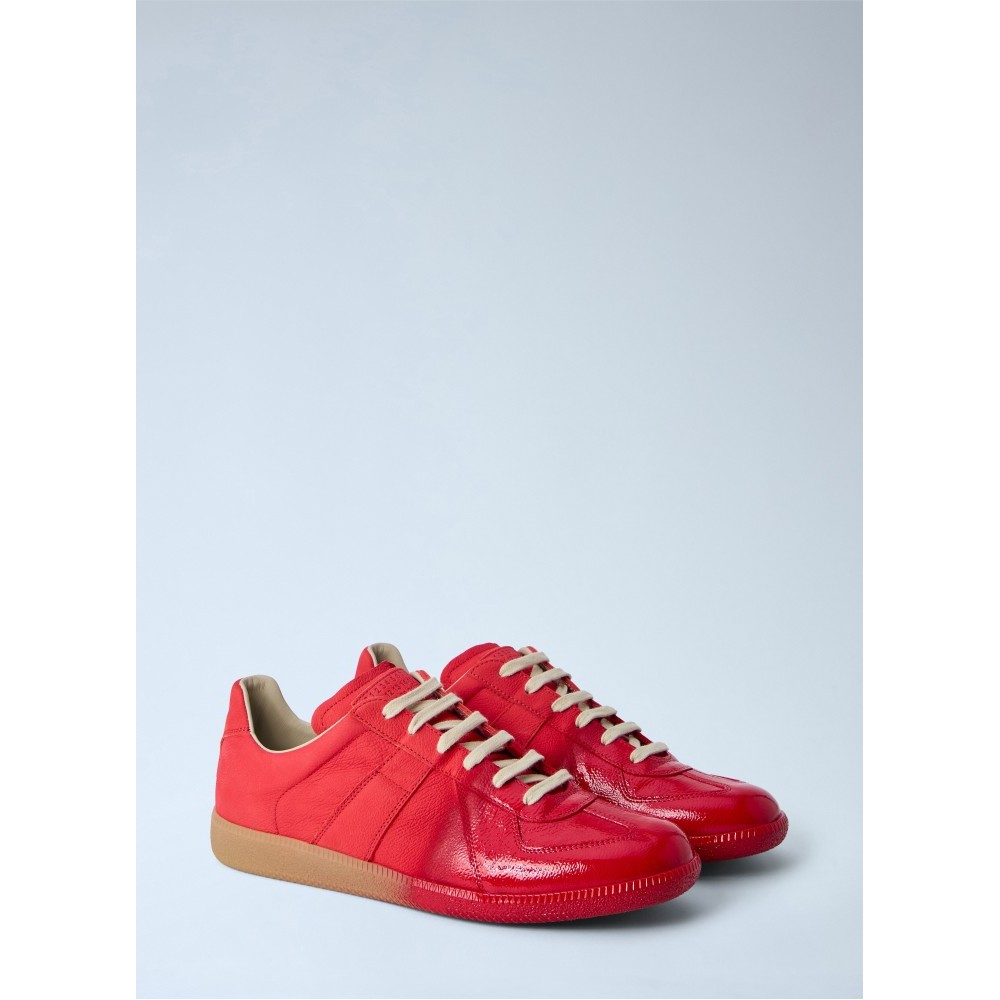 Leather panel sneakers with lace-up fastening and rubber sole.