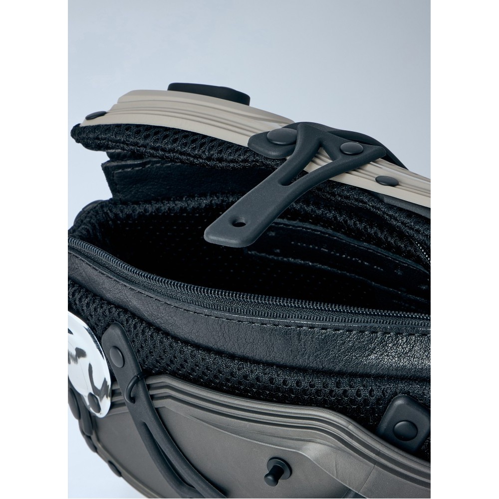 Compact crossbody bag in technical fabric with adjustable strap.