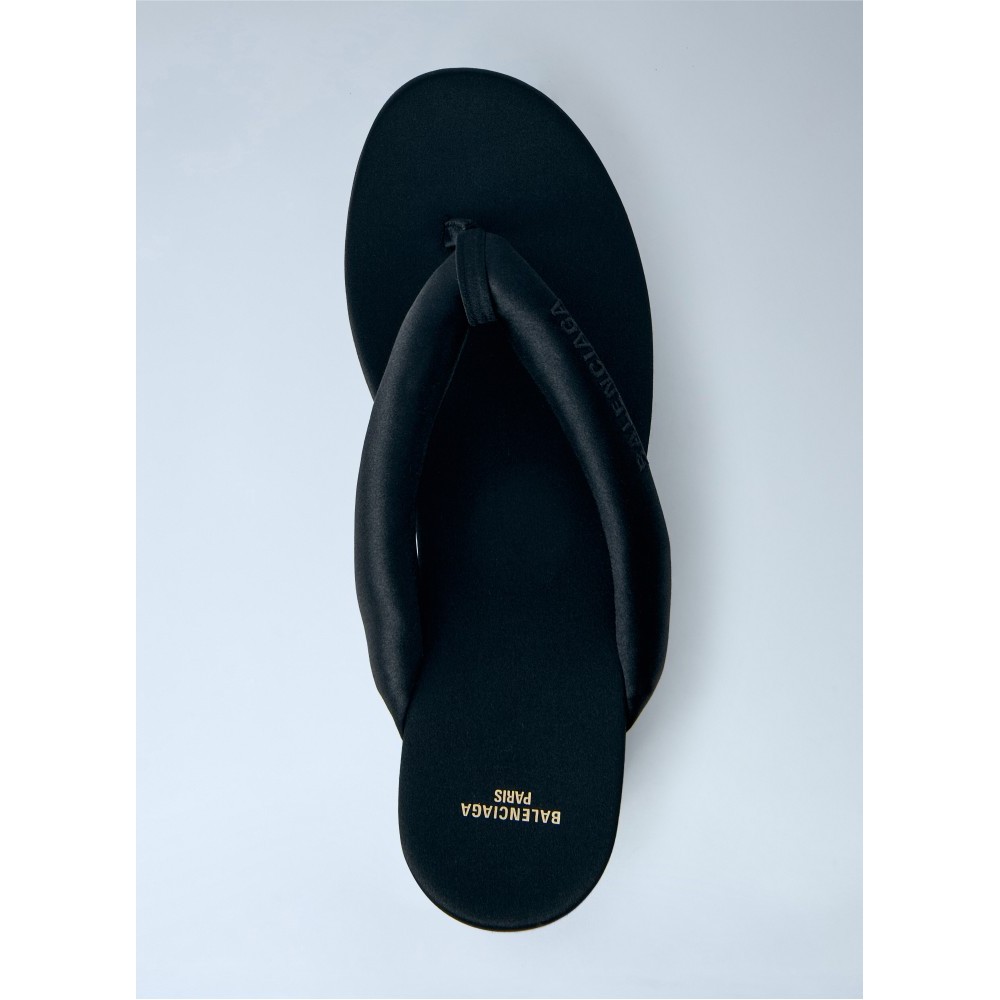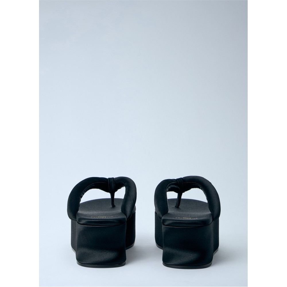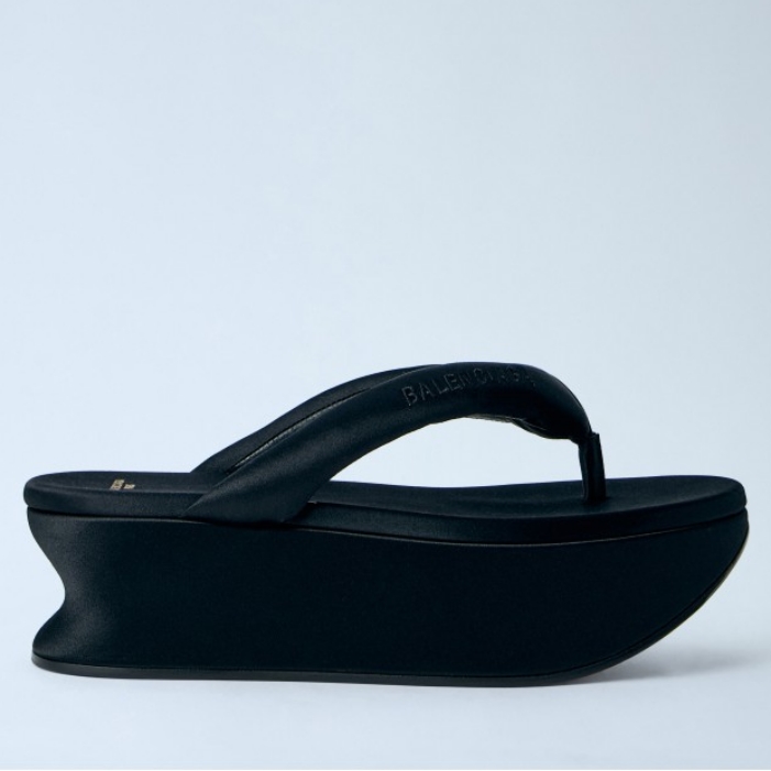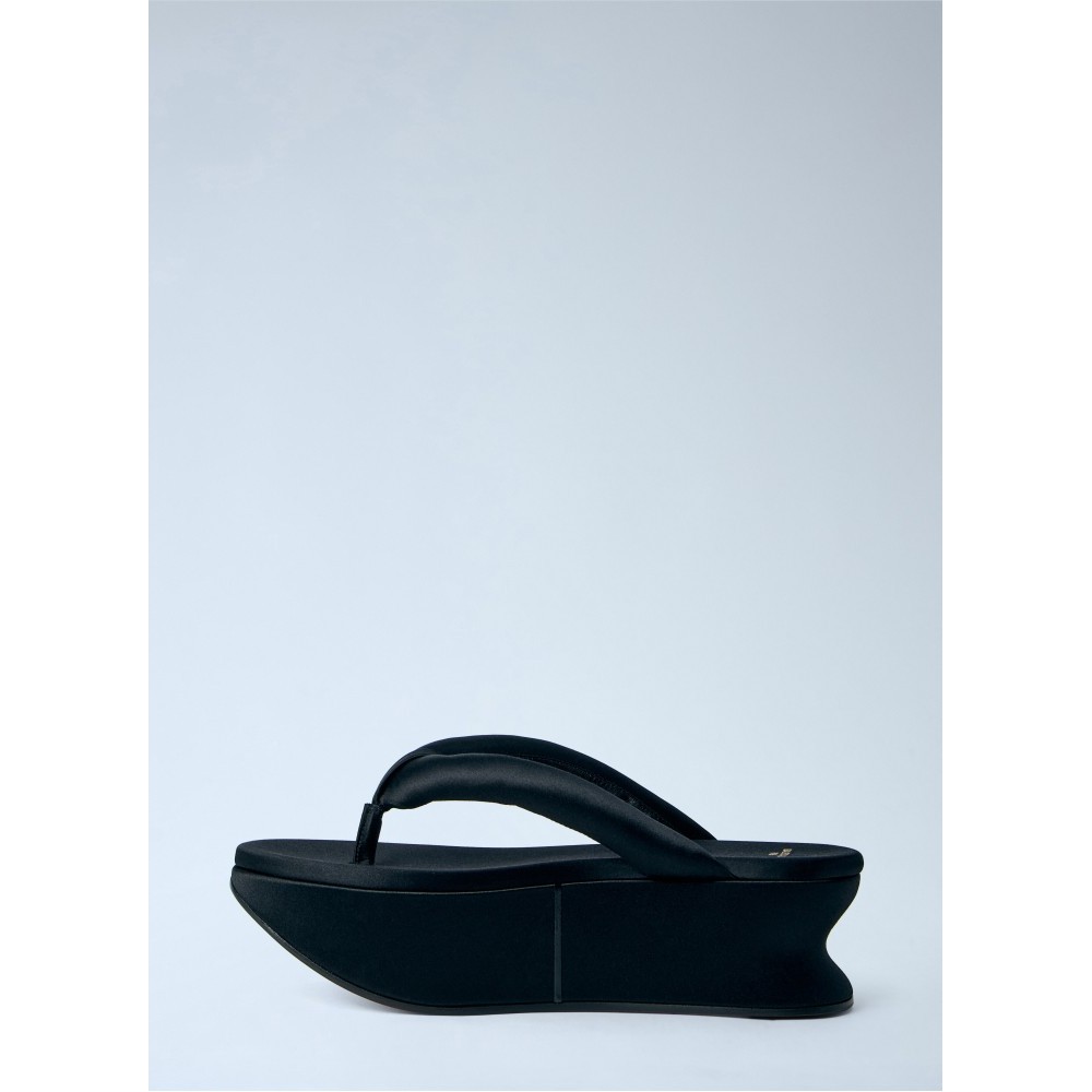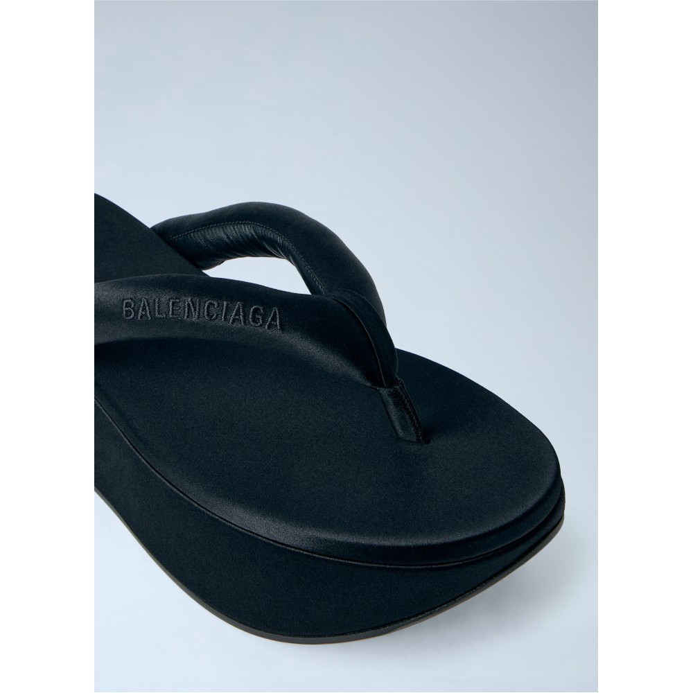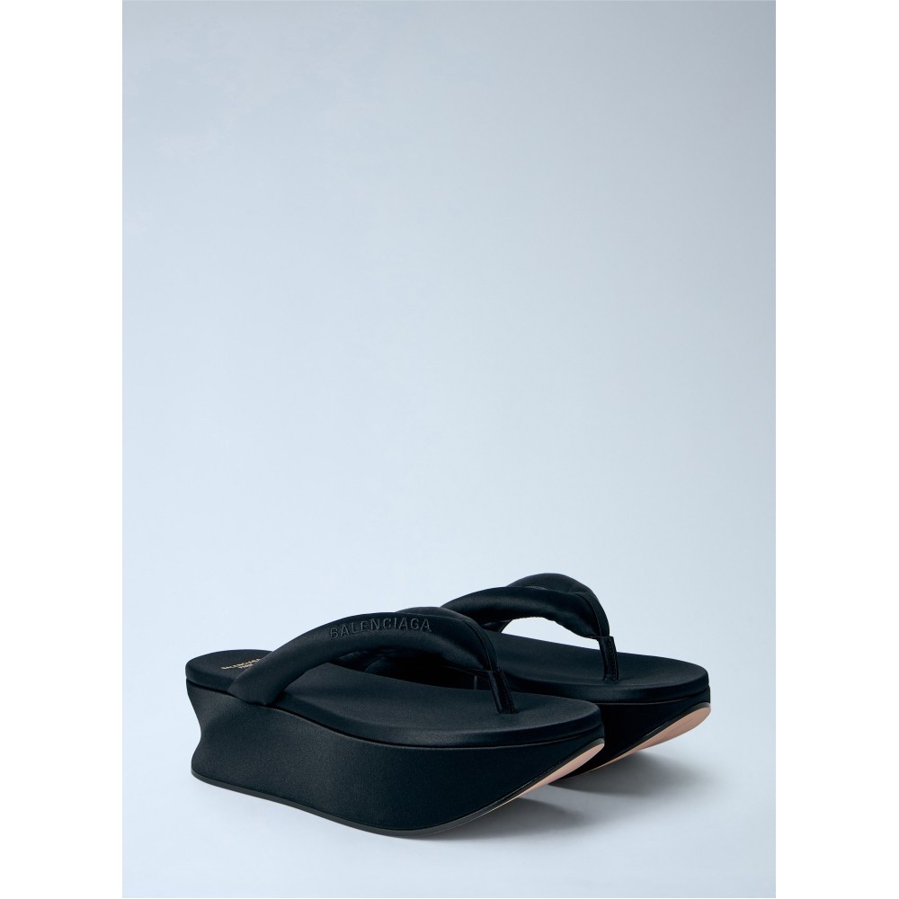 Platform flip-flop sandals with sculpted wedge sole.