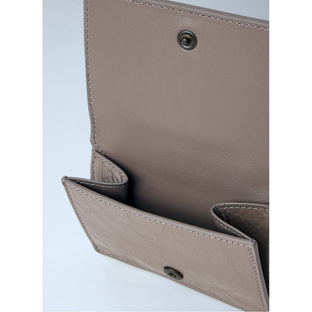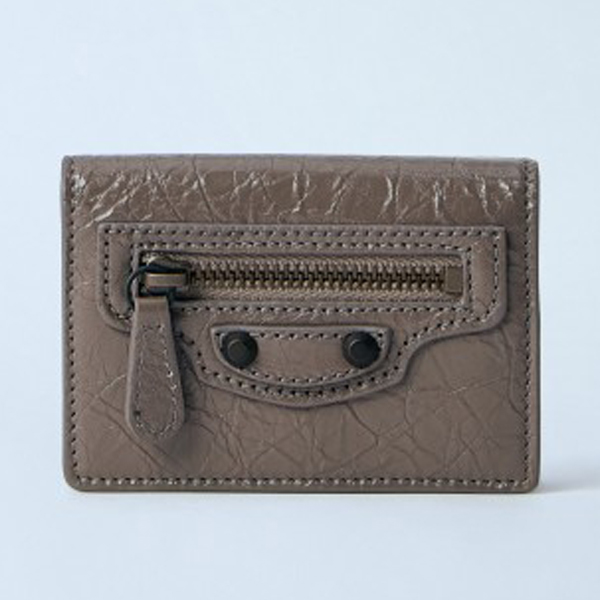 Compact card holder with textured leather.