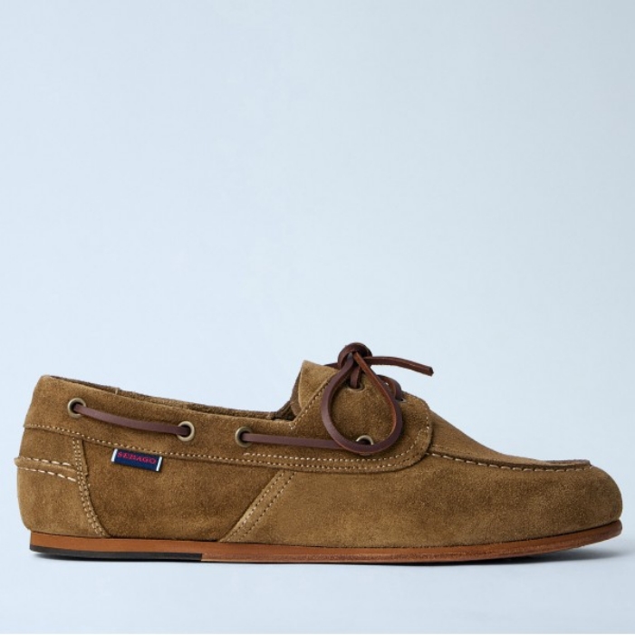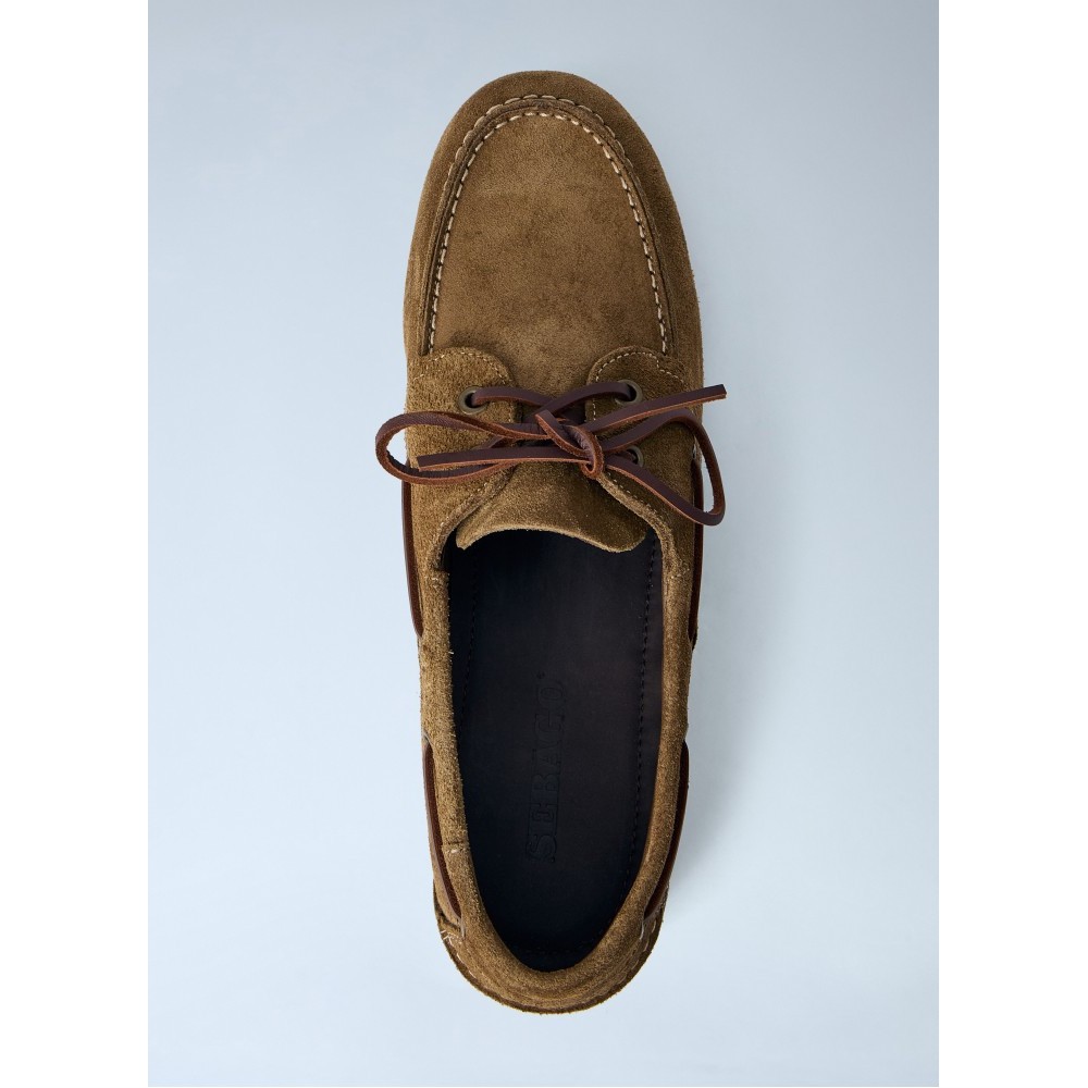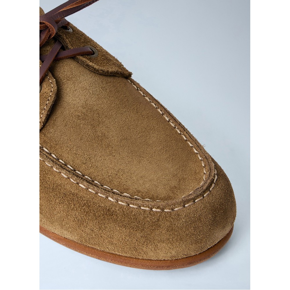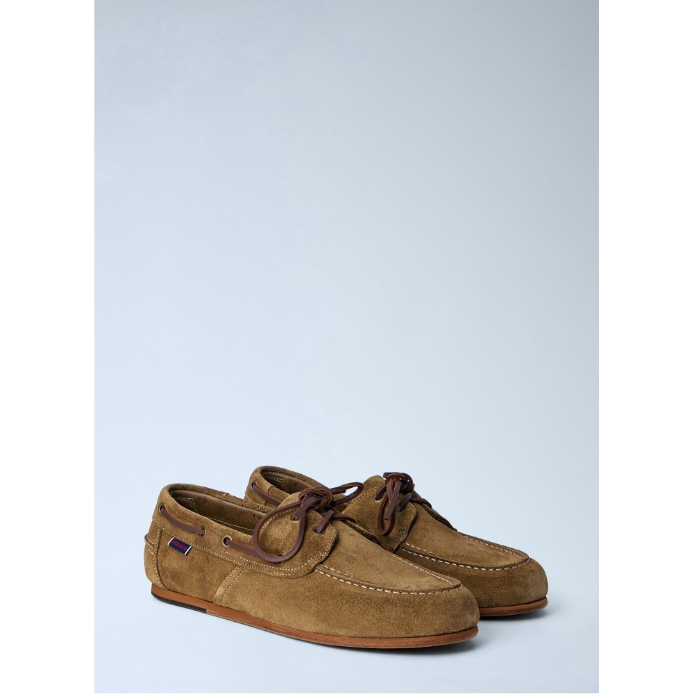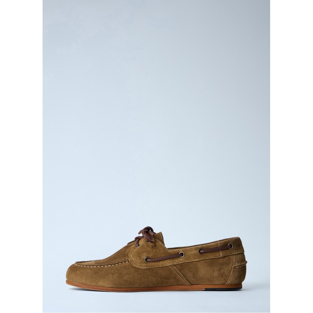 Boat shoes in suede with leather lacing.
