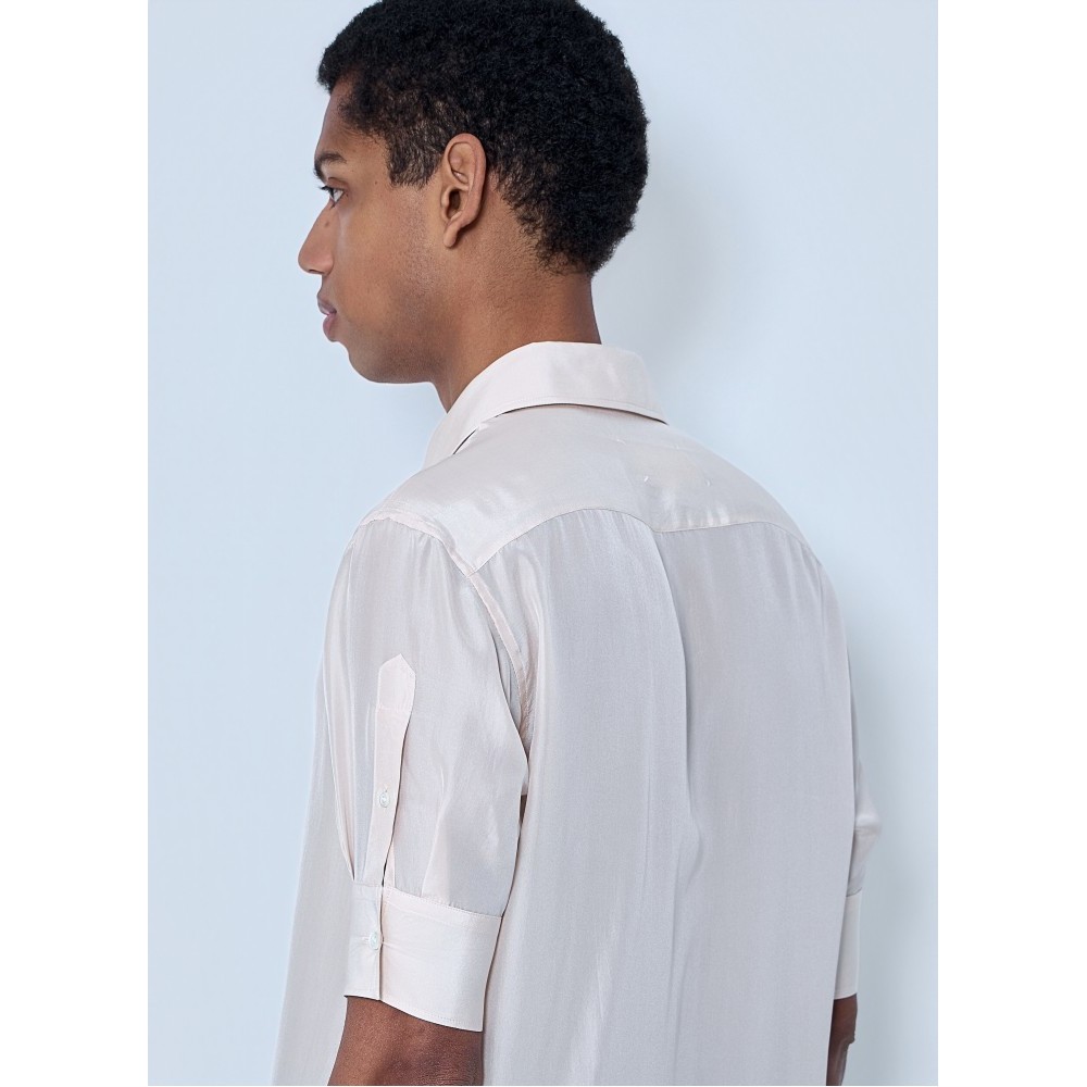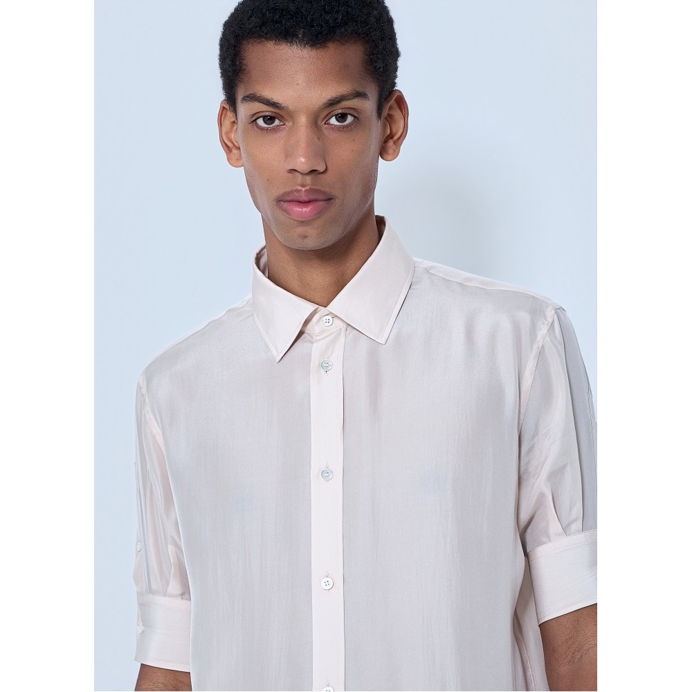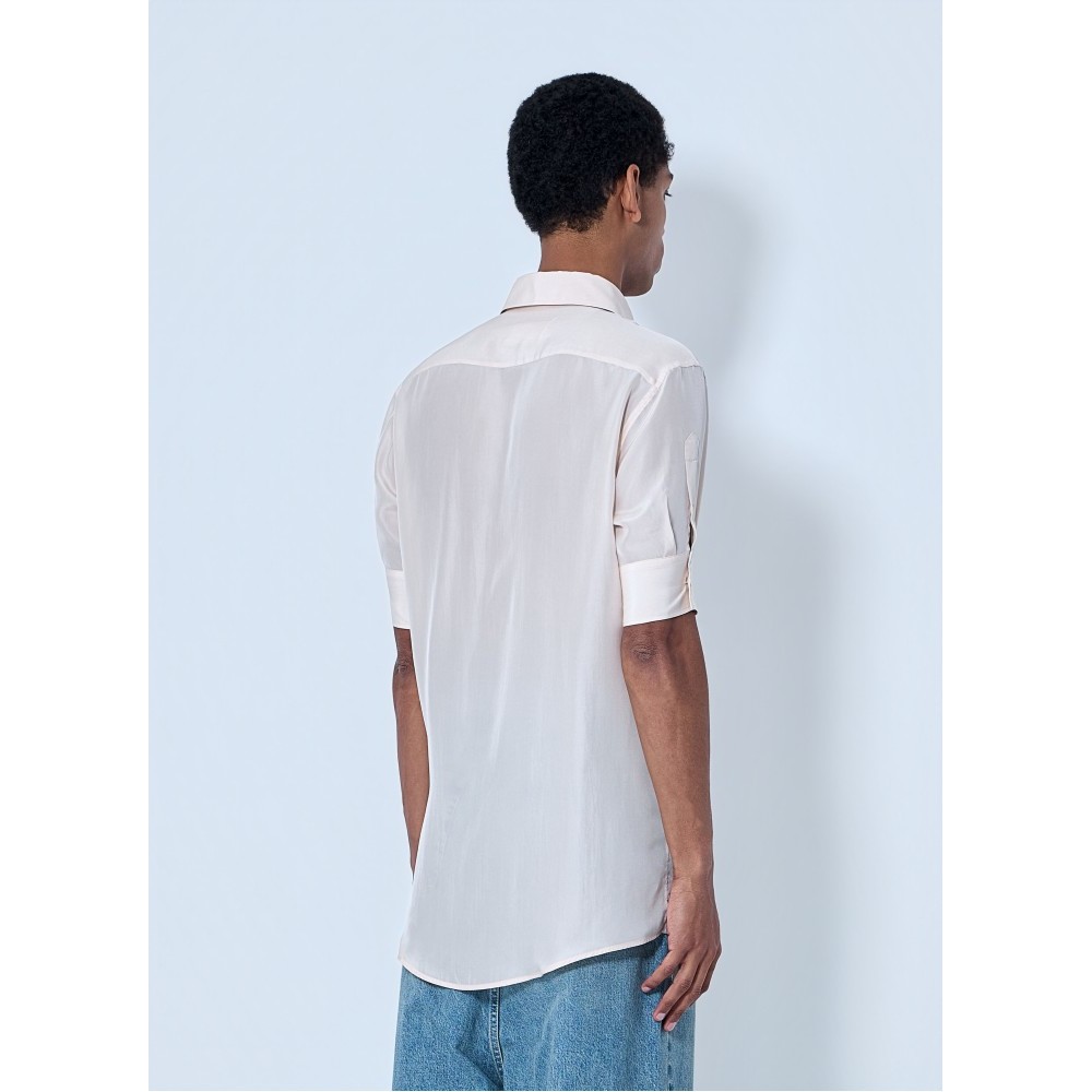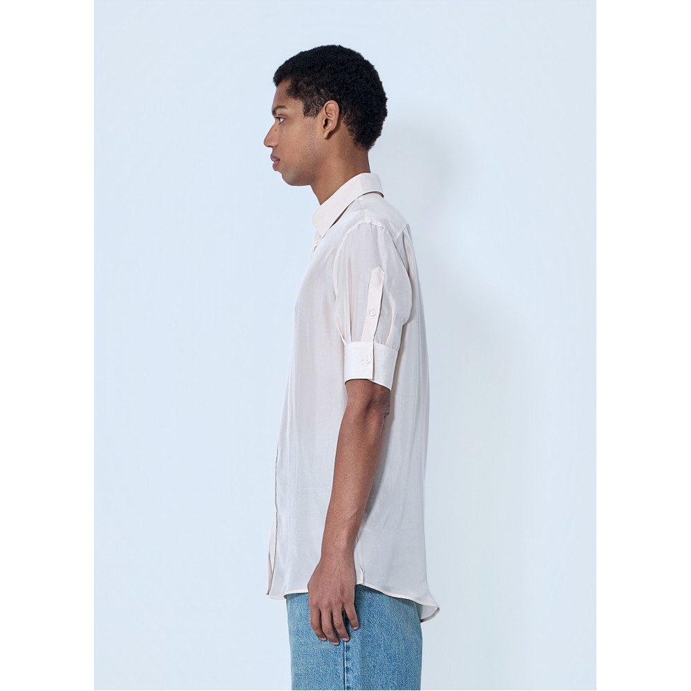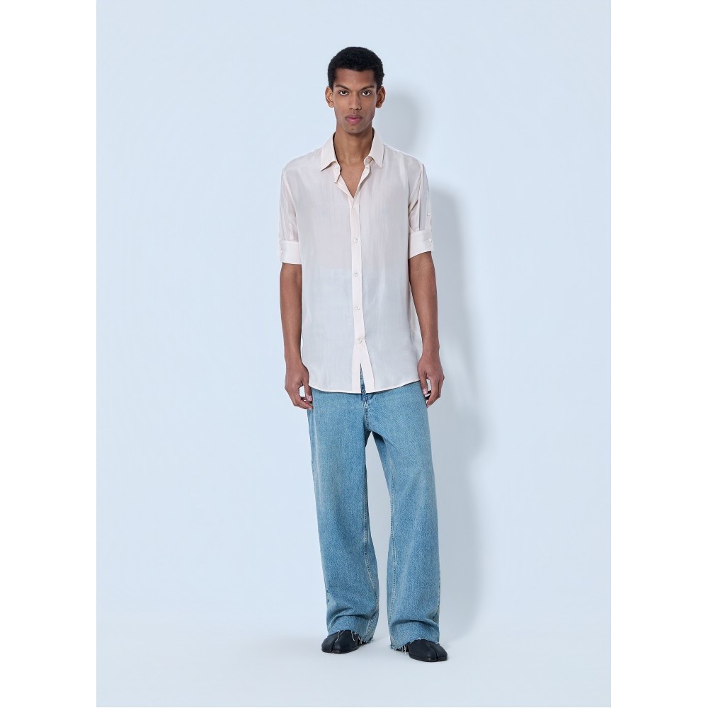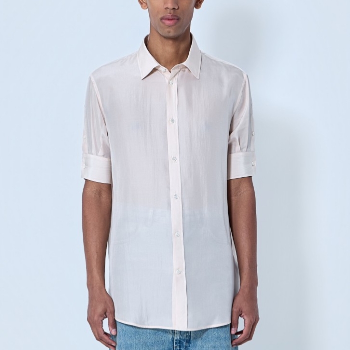 Button-down shirt in lightweight semi-sheer fabric.