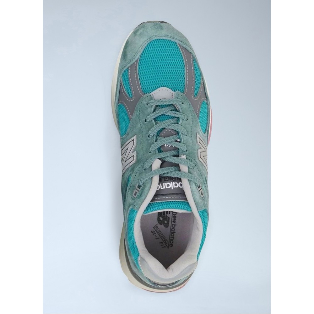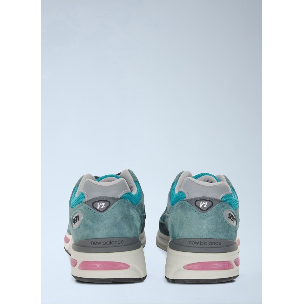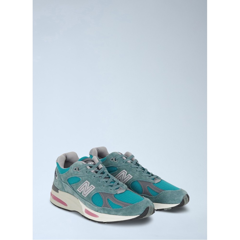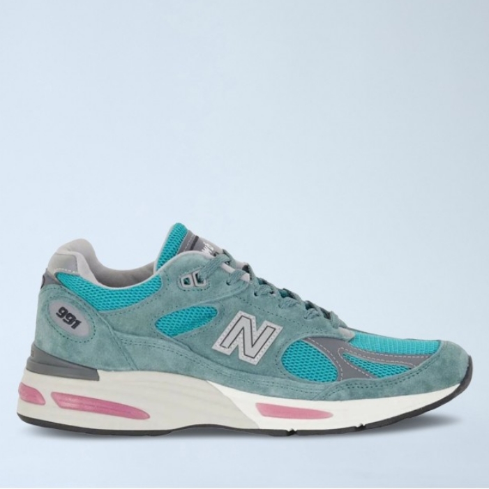 Mesh and suede panel sneakers with cushioned midsole.