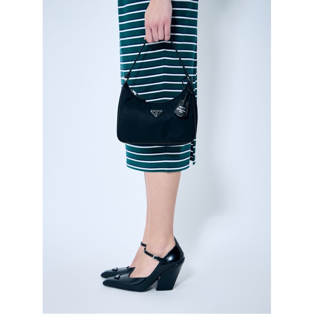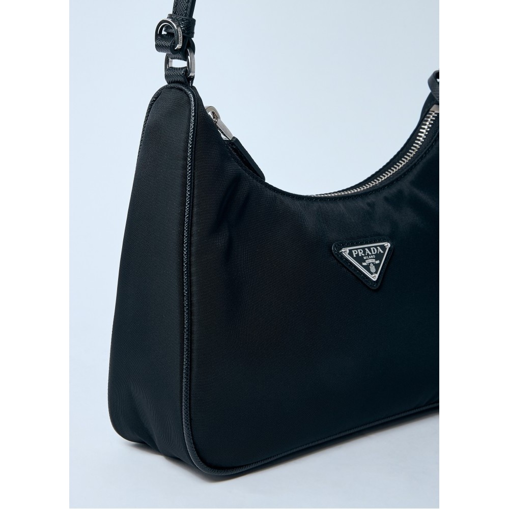 Technical blend handbag with logo plaque.